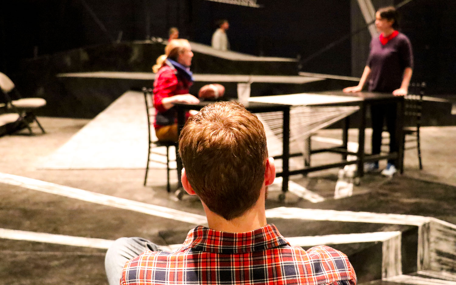 Env3-2ndcopy_1 February 19, 2018 1500 × 938 Env3-2ndcopy_1 James watches the final run-through of Machinal in the Wells-Metz Theatre at the end of rehearsal. Throughout his experience directing this production, James has learned the importance of listening to other voices.