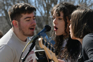 Throughout the performances, a crowd began to gather on the grassy field of Dunn Meadow. As the sun peeked through the clouds, the concert came to life, supported by the growing audience. This energetic atmosphere, however, wouldn’t have been the same without friends and fans. Truman Harper has been a fan of Annie Babie and especially enjoyed this performance for its deeper purpose. “I love this band. I love their sound,” Harper said. “I have five sisters, so my whole life women’s rights have been important to me.” Harper has been involved in the local music community since moving to Bloomington.