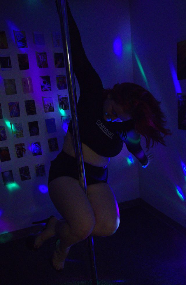 As I said, she has several hobbies, so she turned to her second favourite hobby: pole dancing. This photo was taken during the match. She was pole dancing for the whole match, which helped her not to think about what was going on in Qatar.