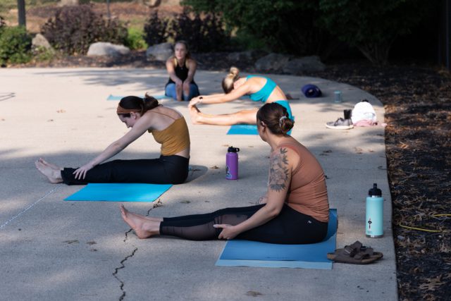 This chapter made me think of the yoga photography I had a chance to do last Friday. My apartment complex sent out a mass email inviting everyone to their biweekly Yoga by the Pool sessions and I emailed them back expressing an interest in photographing them for our scavenger hunt. I ended up getting a lot of really good pictures, and I like this one particularly because of the repeated shape motif that is broken when you get to the woman closest to the camera, who appears to be taking a break from the exercise.