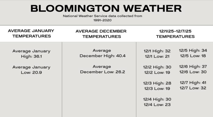 Bloomington – Winter temperatures arrived early this year in Bloomington. For college students – especially those who walk to and from class – the cold brings a new set of challenges.