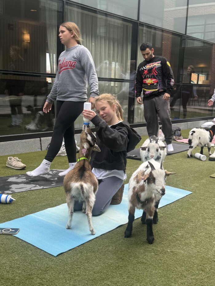 Rise Yoga and Events host goat yoga sessions around the greater Indianapolis area. On a recent Sunday, owner Erin Peckinpaugh and her posey of goats traveled to Bloomington to give residents a morning relaxation and furry friends.